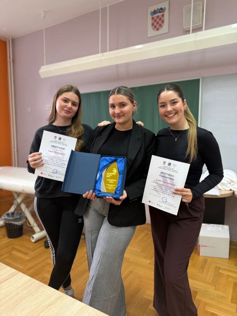 Učenica 3.d razreda naše škole Lara Marjanović pod vodstvom mentorice Kate Kuzmanić osvojila je 2. mjesto te će sudjelovati na Državno natjecanje WorldSkills Croatia 2026. koje će se održati od 4. do 7. svibnja 2026. godine u Zagrebu.